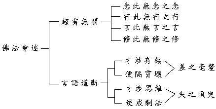 佛言:吾法念無念念,行無行行,言無言言,修無修修,會者近爾,迷者遠乎,言語道斷,非物所拘,差之毫釐,失之須臾。