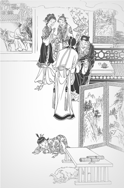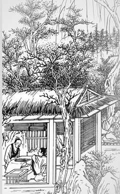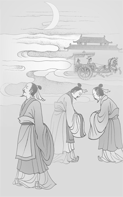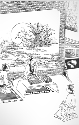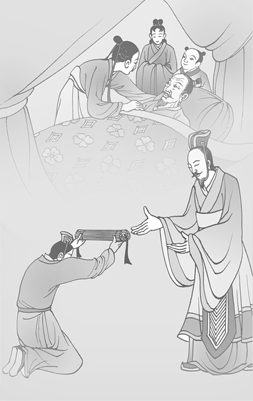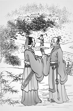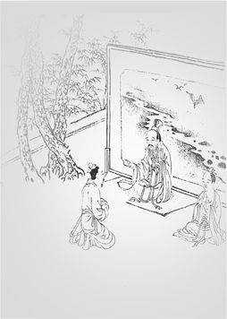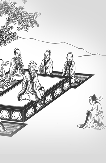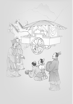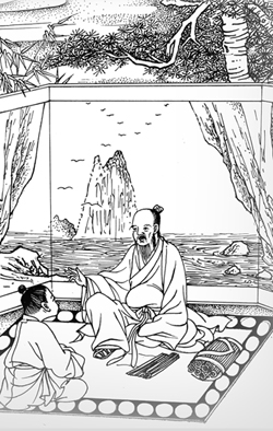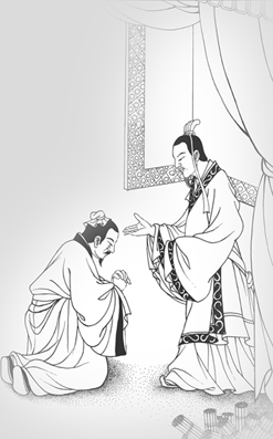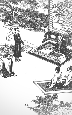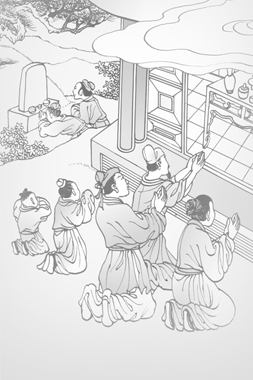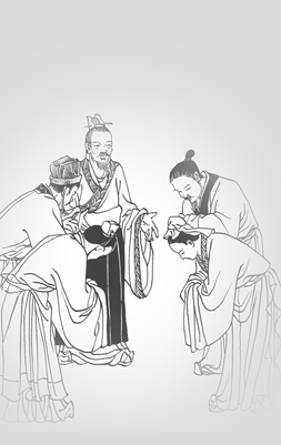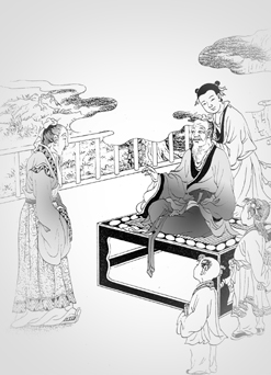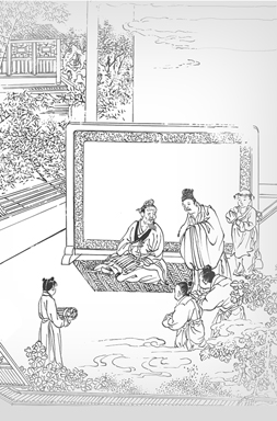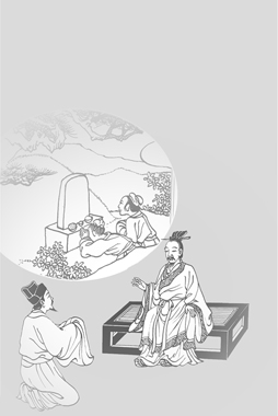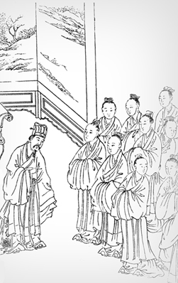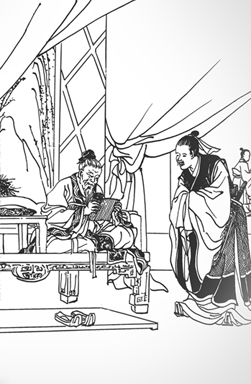 孔子疾病,國君親往探視,孔子右臥在床,頭在東方,加朝服蓋在身上,再將束朝服的紳帶,托放在朝服上,猶如上朝一樣,向北覲見國君。