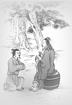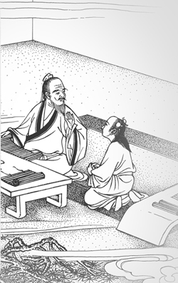 孔子的學生子禽向另一位同學子貢請問:「我們老師每到一個邦國,就能聽聞到這個邦國的政治風俗。這是老師自己去求來的呢?還是這個邦國的君主和人民自動相告的呢?」子貢回答說:「我們老師就以溫和的容貌、善良的行止、恭敬的態度、儉約不奢侈而且對一切謙讓的美德得知的。如果一定要說老師是求來的話,那總該不同他人求得的方法吧!」