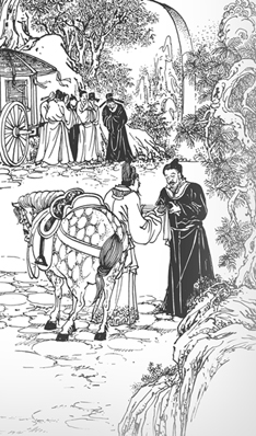 孔子上車,必定站正,抓穩繩子。坐在車內,不向車內回顧,不高聲說話,也不親手指指點點。