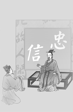 「主忠信」,「忠信」是各種良好德性的內涵,如修齊治平的仁德事業,就是以「忠信」為主來推動的,否則就不會成功。曾子更以「忠信」作為每日三省的功課;可見「忠信」的重要。