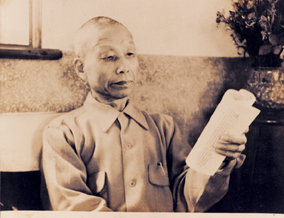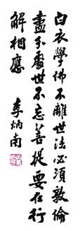 臺中佛教蓮社導師,李炳南老居士,諱豔,字炳南,號雪廬,弟子尊稱「雪公」。山東省濟南人。皈依淨土宗第十三代祖師印光大師,法號「德明」。民國三十八年(一九四九)隨奉祀官府遷臺,時年六十歲。自謂「烽火半生皆僥倖」,可是「心腸分寸未曾寒」。乃發悲願為佛教、為中華文化默默耕耘與奉獻。至九十七歲往生前,一直竭心盡力於喚醒國魂,長養眾生慧命。