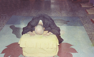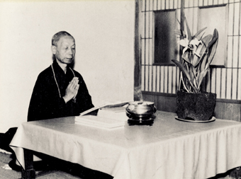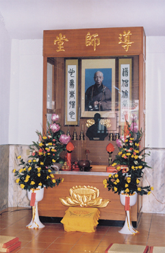 寄漚軒的佛堂,只有一.七五坪。是雪公早晚作功課的地方。雪公來臺後,專弘淨土念佛法門,雪公說:「我們薄地凡夫,能以當生成就,這種便宜無處找了,大家要真正勤修身、口、意三業,並以信、願、持名,力行念佛法門。」
