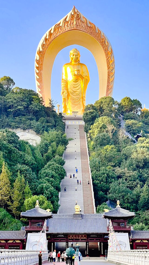 也可以再試著觀想:阿彌陀佛的蓮華寶座上,最小的一片花瓣,就要比美國的面積(東西長四千五百公里,南北寬二千七百公里),大二倍以上。那麼請想想看,坐在這個蓮花寶座上的阿彌陀佛,圓滿報身有多大?可參考《觀經》的第九觀「佛身觀」即可了知!