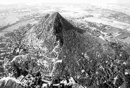 車子進入一望無際的麥田,四周點點人煙,就在濟南市東北郊外的一方平原上,只見一座尖尖的山,拔地而立,一枝獨秀地刺向藍天,更遠處還有一座圓墩墩的小丘。有人隨口問導遊:「請問那尖尖的是什麼山?」導遊答說:「是華山。」 |