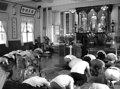 案:金義楨老居士,今年高齡九十。民國四十年,老居士官拜少校,因病被迫除役,住進樂生療養院,遂發願籌建棲蓮精舍。民國四十三年,精舍落成,老居士一肩扛起念佛會會長的重責大任,護持無數樂生蓮友的道業,至今不疲不厭,老而彌堅。