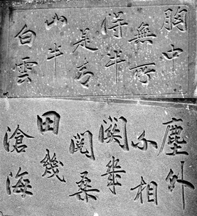注:遍閱翁氏《瓶廬詩稿》未見此聯。佛門高僧虛雲老和尚重建廣東雲門大覺禪寺,曾在寺前題書此聯,唯「半是青山半白雲」的山改為松。大陸多處寺院懸掛此聯,上款並注明「虛雲上人舊句」。然此聯究竟出自何人手筆,未敢定論,只有存闕待查。 |