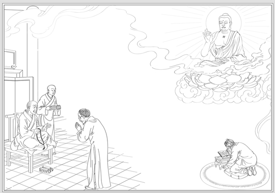 此(案:指拔薦親人)頭一次之法則。二次照此也好,或不念《彌陀經》,《往生咒》,但焚香禮佛後,即念〈贊佛偈〉念佛。以後均與初次同。如不知,當問念佛居士,自可悉知。汝欲親得實益,當依吾言。(《印光法師文鈔三編.復劉元仁居士書》)