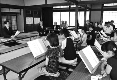 (日本岡山市後樂園的鶴鳴館,用私塾教授法,帶領民眾「素讀」論語。) |