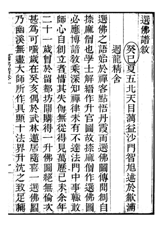 佛門各宗的「法派」承襲,蕅祖一向反對,他不敢以古代「有儒有禪有教有律」的大德看齊,也不屑為今日的「有儒有禪有教有律」者,自稱「八不道人」,雖然通曉天臺教典,不作天臺子孫,自稱私淑天臺而已。雍正、乾隆年間,編輯《龍藏》時,各宗各派盡心收錄本宗本派的尊宿著述,蕅祖著述應歸於何宗何派之下?實難判定,有此遺珠之憾,也在情理之中。 注:雍正下旨將《揀魔辨異錄》收入藏經的「上諭」云:「著將藏內所有藏(漢月法藏)、忍(潭吉弘忍)語錄,并《五宗原》、《五宗救》等書,盡行毀板,僧徒不許私自收藏。有違旨隱匿者,發覺以不敬律論。另將《五宗救》一書逐條駁正,刻入藏內。使後世具正知見者,知其魔異,不起他疑。」 |