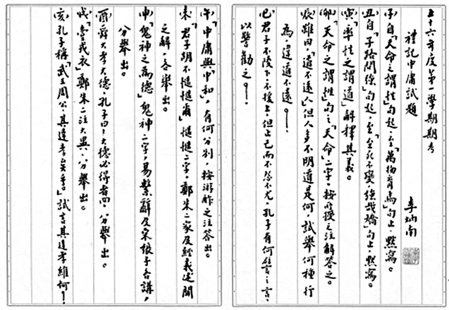 (三)諸生曾問做人道理,每授課已擇書中要義,強調勸勉,試各言所得。(〈中庸〉)