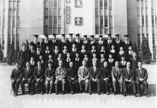 (雪公與民國五十七年興大中文系應屆畢業生合照)