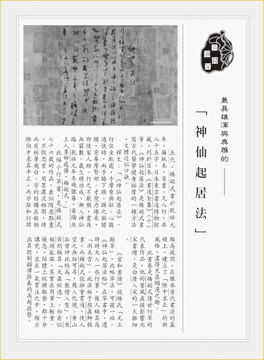 《宣和書譜》說楊氏「尤工顛草」,此帖草法,可窺一斑。《神仙起居法帖》在草書中,還時時夾入一些行書,後人稱其為「雨夾雪」。此法始于顏真卿稿書,而楊凝式能融會貫通,使人望之無跡可尋,幾入化境。黃山谷曾評此帖為「散僧入聖」,米芾則稱其「天真縱逸」。初看似粗頭亂服,其實在用筆上輕重、緩急,結體上縱橫取勢,都十分講究,並在一氣貫注之中,顯示出其控制韻律節奏的高超技藝。