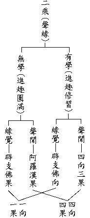 窺基大師之《法華玄贊》卷一云:「戒定慧三,正為學體,進趣修習,名為『有學』;進趣圓滿,止息修習,名為『無學』。」如表所示: