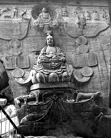 彌勒菩薩弘揚法相教義,教人「萬法唯識」的道理。在大足石刻,有一龕名「縛心猿,鎖六耗」圖,描述的就是彌勒化身──