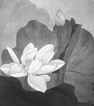 張大千摩耶精舍之蓮華即白蓮華,傳聞出自南美洲之原生種,張大千居士能於弱水三千,但取一瓢飲,可見此白蓮華之異於俗情。世人能拋棄名利鎖,一心傾向蓮邦,殊為難能可貴。