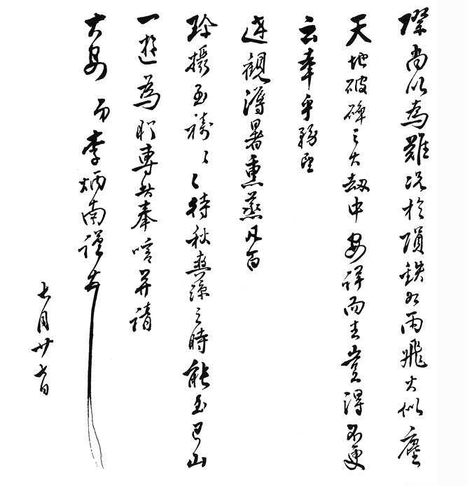 栗峰老哥台鑒:疏於奉候,計數月矣。渴想奚如?昨於仲采兄處得悉 祥五大兄歸真道山之訊,不勝驚悼。 台端篤於友,于鴒原之痛,情所不免。不過世法無常,人生危脆,古往今來,總歸如是。而能得考終命者,前哲即許為大福。此在承平之際,尚以為難,況於隕鐵如雨,飛火似塵,天地破碎之大劫中,安詳而去,豈得不更云幸乎!務望 達觀。溽暑熏蒸,凡百 珍攝。至禱至禱,待秋爽涼之時,能至巴山一遊為盼,專此奉唁,并請 大安 弟李炳南謹頓 七月二十七日