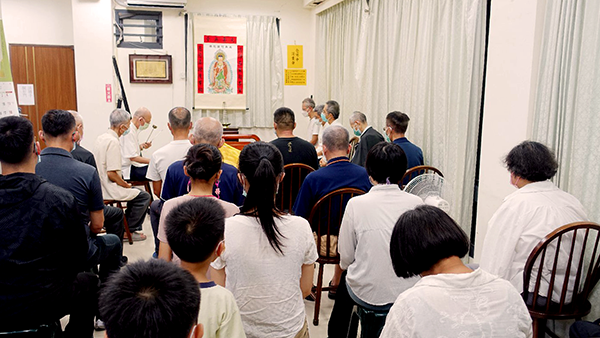 翌晨,眾蓮友來接替,我們就回家休息料理私事。俟下午三時再去時,小客堂裡已擠得滿滿的,約共七、八十位蓮友齊聲同在念佛。原來這天恰巧是星期日,來的大半是公務人員,引得路人駐足而觀,無不稱奇,暗忖:「別人家做法事,不是和尚,就是道士,何以這家卻是這些斯文人士擠滿一室,同聲共念佛號呢?」真有些莫名其妙!