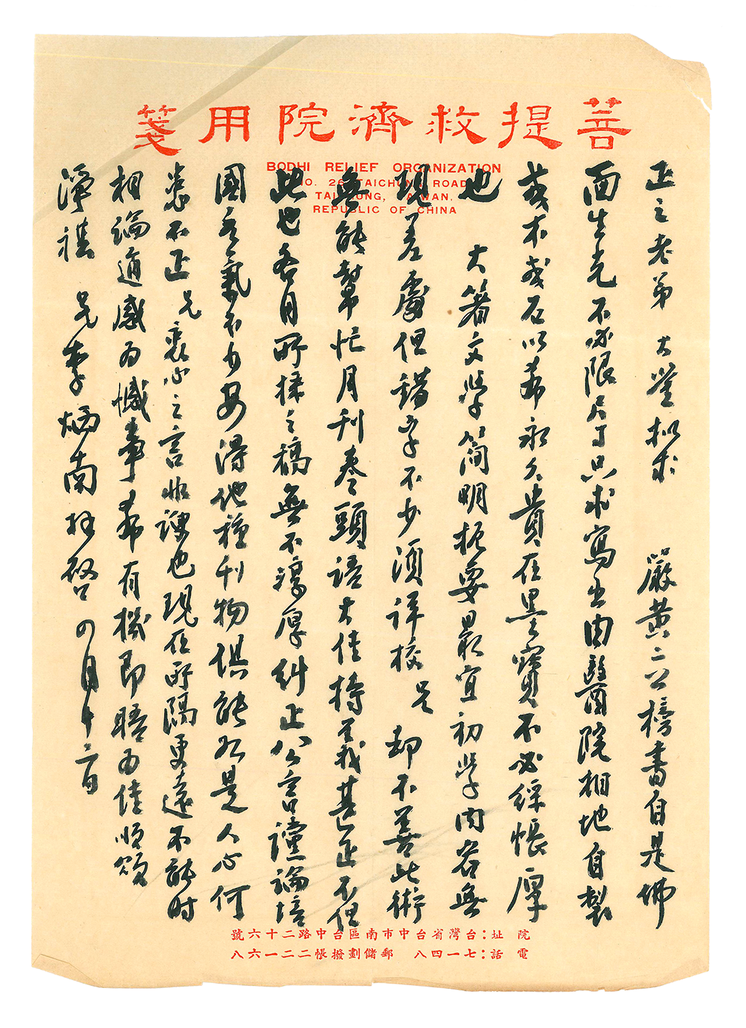 正之老弟 大鑒:擬求 嚴、黃二公榜書,自是佛面生光,不必限尺寸,只求寫出。由醫院相地自製,或木或石,以希永久,貴在墨寶,不必綵帳厚也。